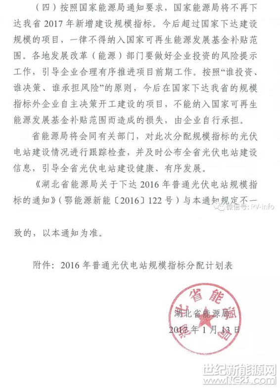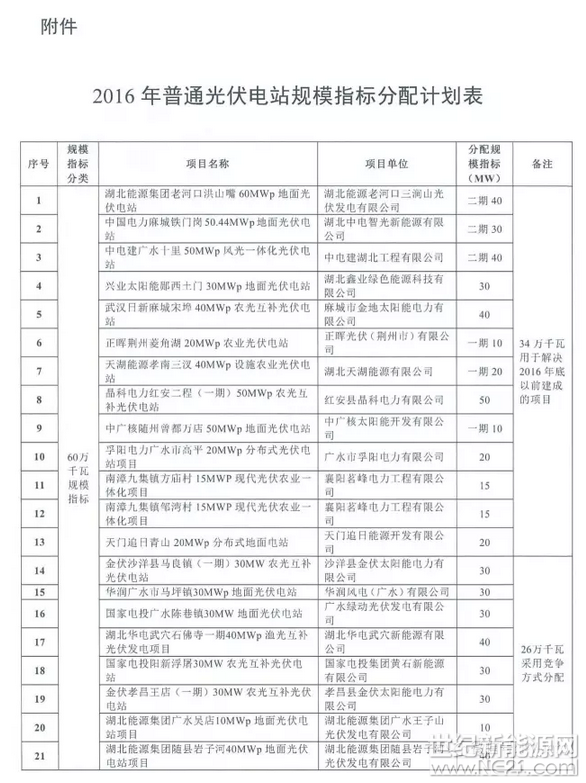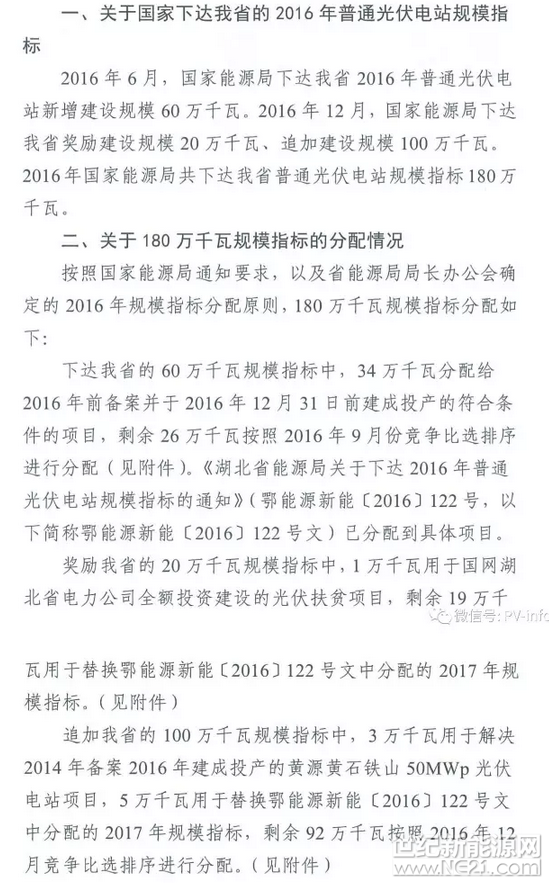 1.8GW 77个项目 湖北下达2016年普通光伏电站规模指标