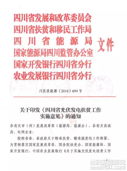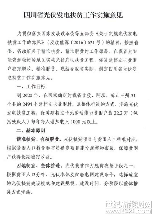 四川省关于《光伏发电扶贫工作实施意见》的通知