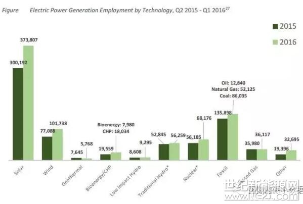 行业从业人员总数达到了373,807人,比2015年同期增长24.5%;风电行业从业人数达到101,738人,比上年同期增长31.9%;而火电厂(包括煤、天然气、燃油发电)从业人数为151,000人,比上年同期增长11.0%。