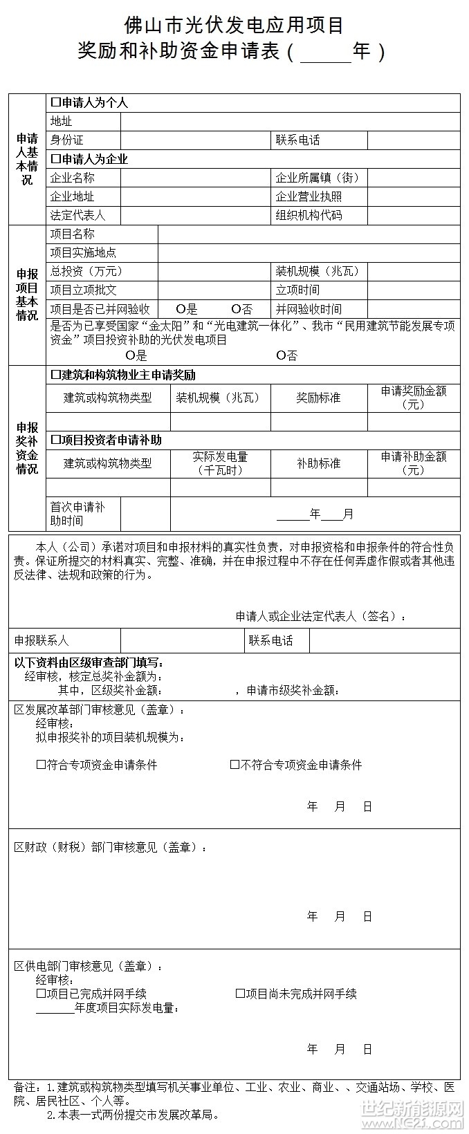 (1)《佛山市光伏发电应用项目奖励和补助资金申请表( 年)》(见附件2);