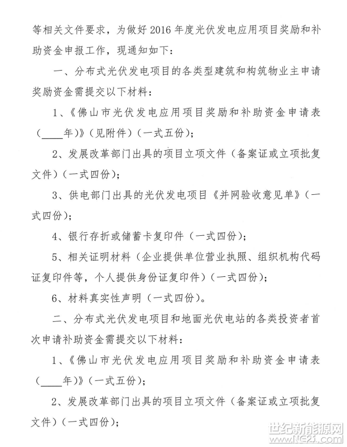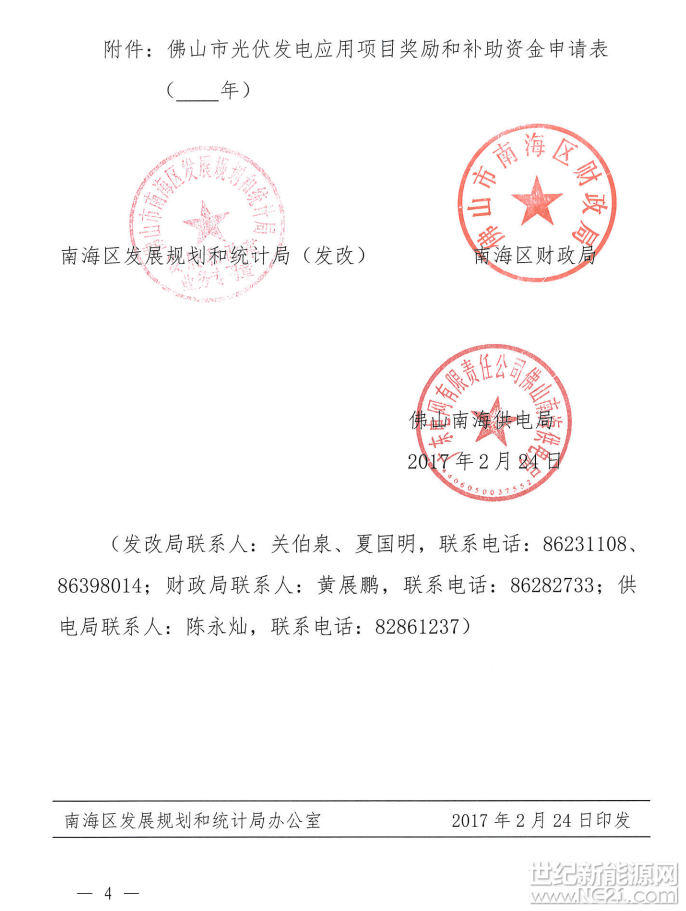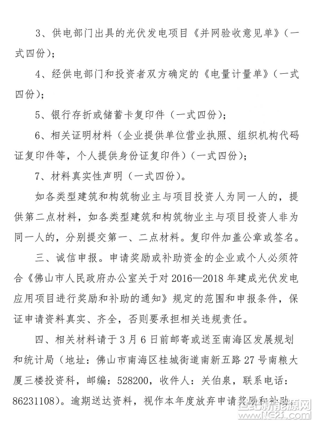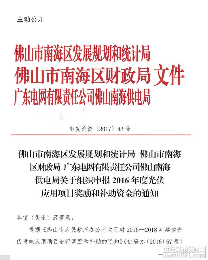 发电应用项目进行奖励和补助的通知》近日,广东佛山南海区发布《关于组织申报2016年度应用项目奖励和补助资金的通知》。《通知》指出相关材料必修于3月6日前上报南海区发展规划统计局,逾期视作本年度放弃申请奖励和补助。