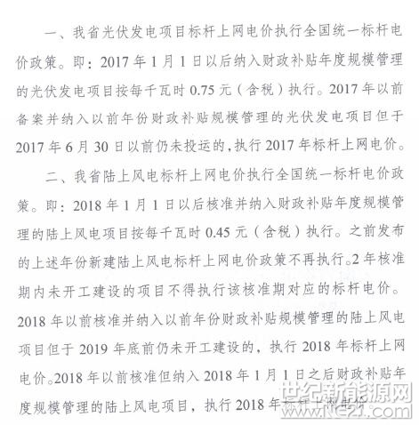 发电陆上风电标杆上网电价文件的通知,明确2017年光伏、风电标杆上网电价。其中,光伏项目,2017年1月1日以后纳入财政补贴年度规模管理的按每千瓦时0.75元(含税)执行;2017年以前备案并纳入以前年份财政补贴年度规模管理的但2017年6月30日以前仍未投运的,执行2017年标杆上网电价。