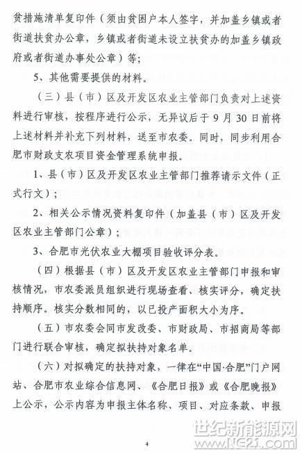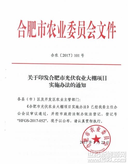 世纪新能源网报道:近日,合肥农委印发《