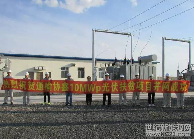 协鑫新能源立足当地,服务当地,积极响应通榆县政府脱贫攻坚工作号召,全力保障通榆协鑫10MW光伏扶贫电站尽速完成并网,使电站收益早一日用于扶贫工作。通榆协鑫电站运行后,每年将拿出120万元扶贫款,带动400户当地贫困户脱贫,每户每年获得3000元扶贫资金。
