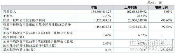 近日,方林科技(430432)披露2017年中报,报告期内公司实现营业收入15,447万元,比上年同期减少818万元,同比下降5.03%;营业利润144万元,比上年同期减少2189万元,同比下降93.83%;利润总额111万元,比上年同期下降2315万元,同比下降95.42%;净利润133万元,比上年同期下降1960万元,同比下降93.66%;经营活动产生的现金净流量2176万元,比上年同期减少1268万元,同比下降36.82%。
