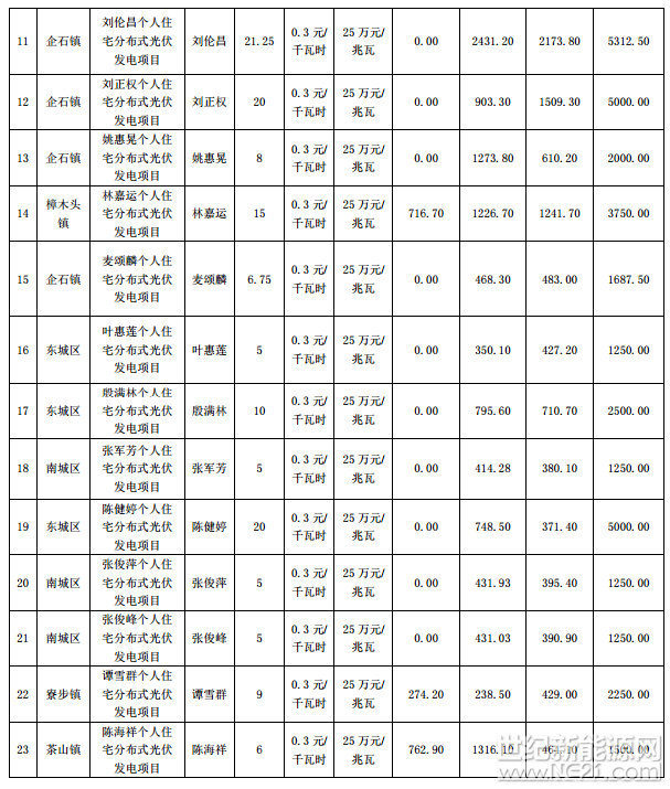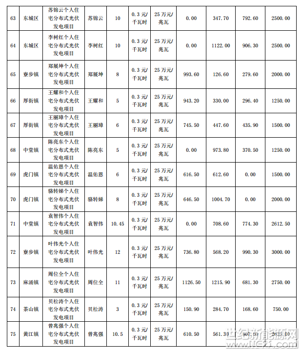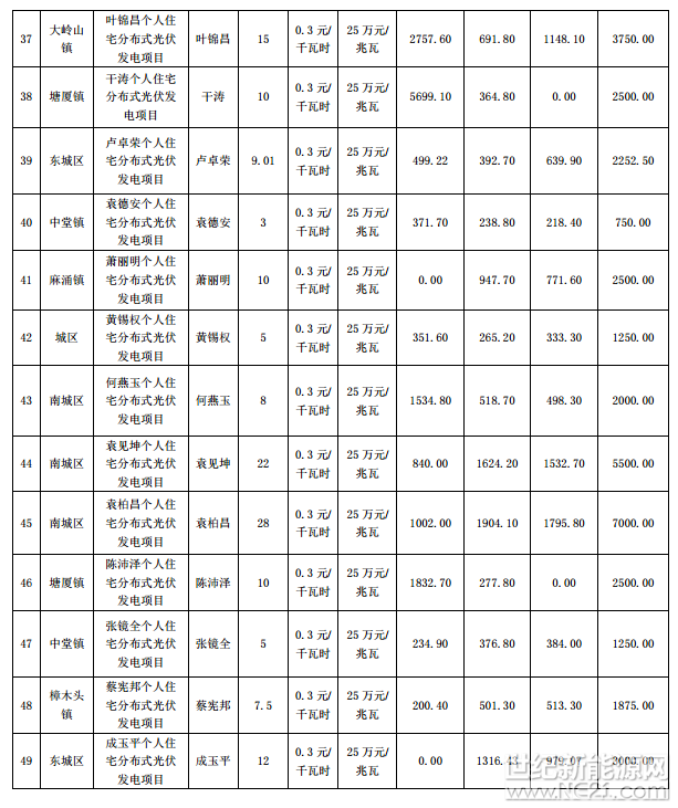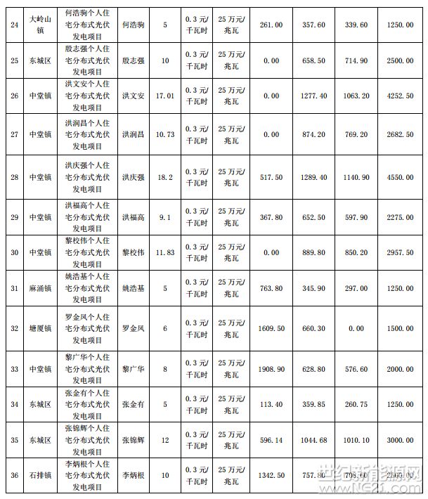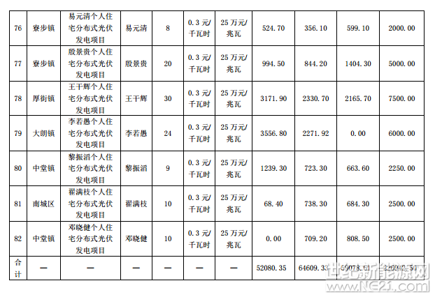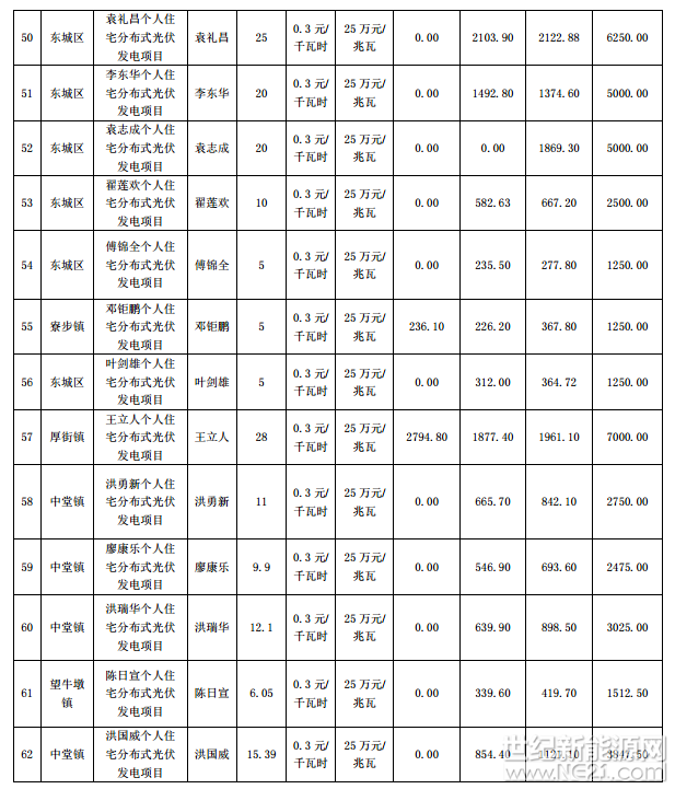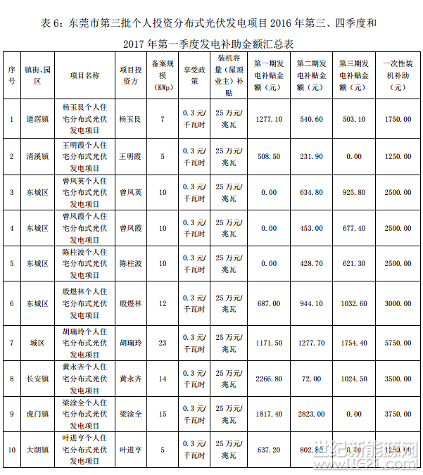 广东东莞市前四批分布式光伏项目补助名单(2016-2017Q1)