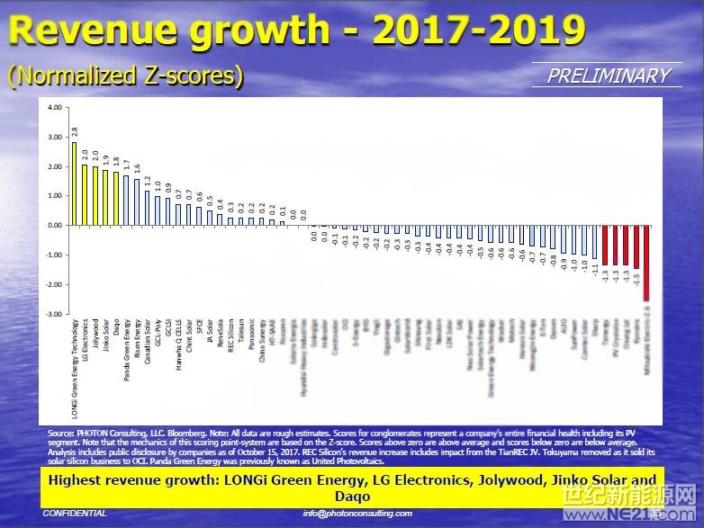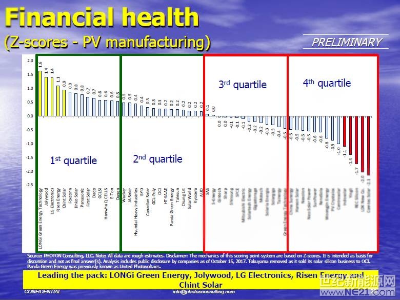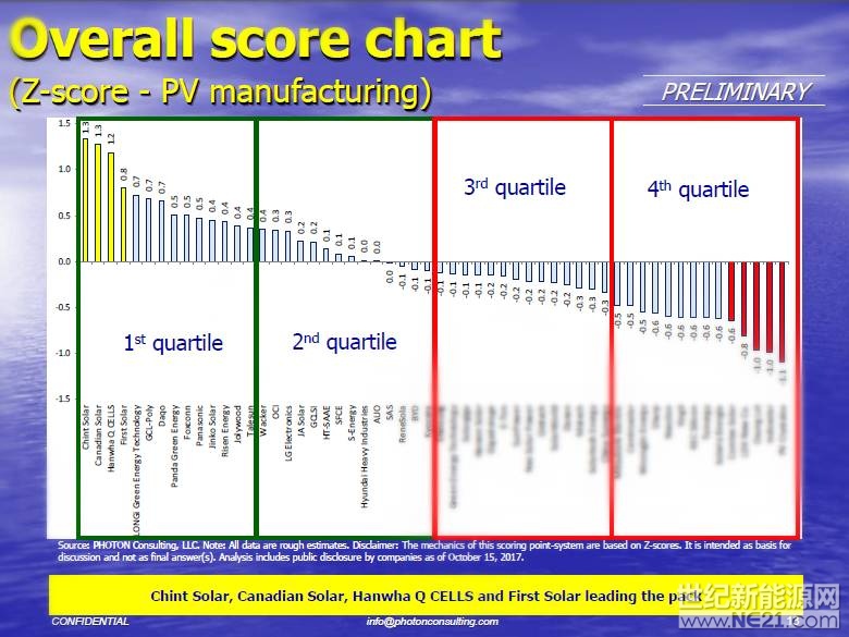 本次发布的PHOTON Consulting从全球范围内选取了56家在可持续性、经营效率、财务健康等综合实力方面表现优秀的光伏企业进行排名比较。