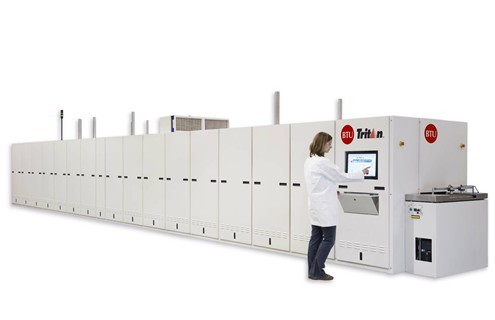 BTU新型 TRITAN™双轨金属化烧结系统将在本次展览会上盛大亮相,此尖端系统可将产能提高至每小时3600硅片、配备边支撑传送系统、并可在3秒内达到温度尖峰。这套90 MW的金属化烧结系统应用了BTU公司独有的三带速技术,用户可受益于高达每秒200°C的快速升温能力,而同时不会影响到干燥和冷却区的温度曲线。此三段式三速系统带来了革命性的温度曲线的优化和控制。